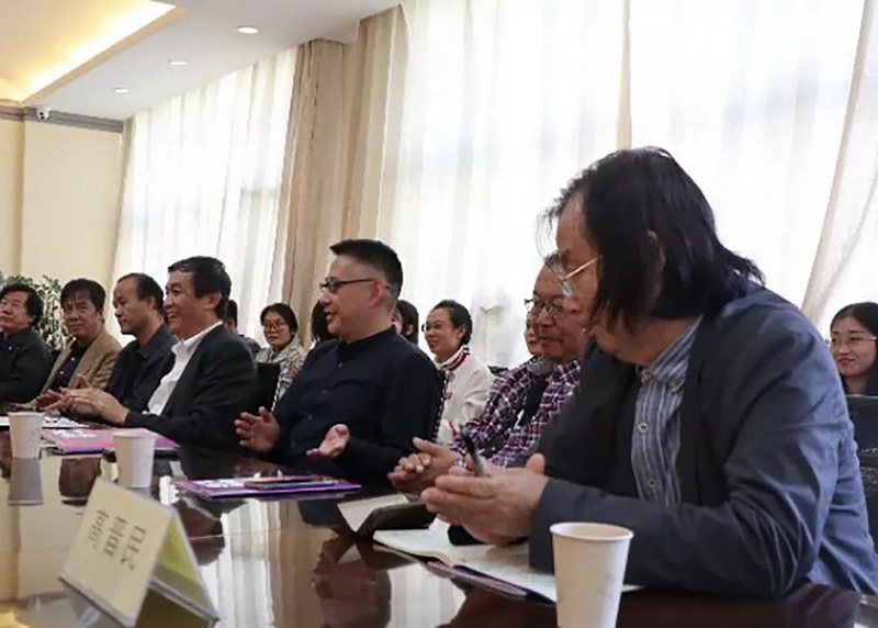 开幕式活动后,西安美术学院设计系与新疆师范大学美术学院进行了学术交流,并就两校未来的双方合作进行了充分的研讨。西安美术学院设计系主任张浩教授介绍了丝路精神-西部国际设计双年展的总体情况,举办的目的和意义,他表示通过本次活动,加强西部艺术院校之间的交流,并从教育教学方面就师资队伍建设、人才培养模式等方面的合作提出了设想。新疆师范大学美术学院院长李勇教授感谢西安美术学院为新疆的院校师生带来高水平的展览,并介绍了本单位相关情况,也表示两校之间加强联系,在学科建设及师资队伍发展方面多多合作。与会专家、学者西安美术学院设计系柯建军教授、高晋民教授,新疆师范大学美术学院副院长王松教授、李群教授、刘建新教授及国家艺术基金三位专家李东、陈浩、柴新春等依次发言,就丝路精神内涵、双年展举办、传统文化推广等问题进行了2个多小时的学术研讨、交流。我院院长郭线庐教授也出席了研讨会,并就双年展的发展以及校际之间的合作提出了期望。