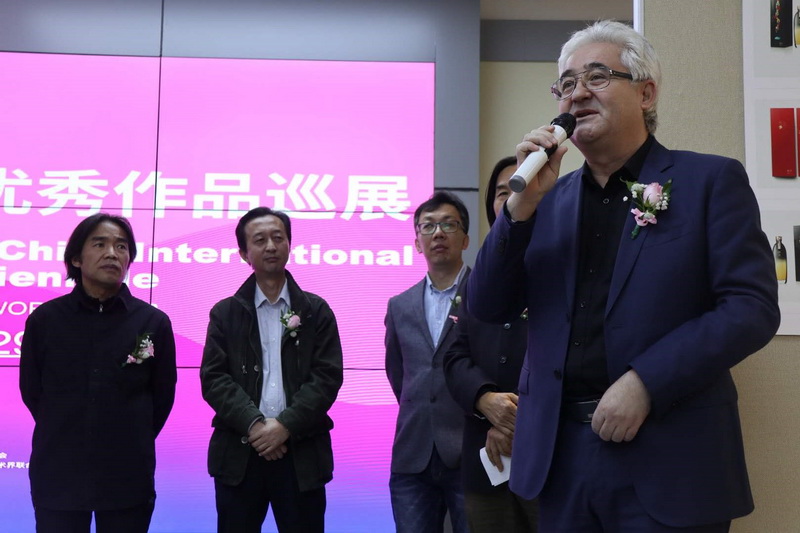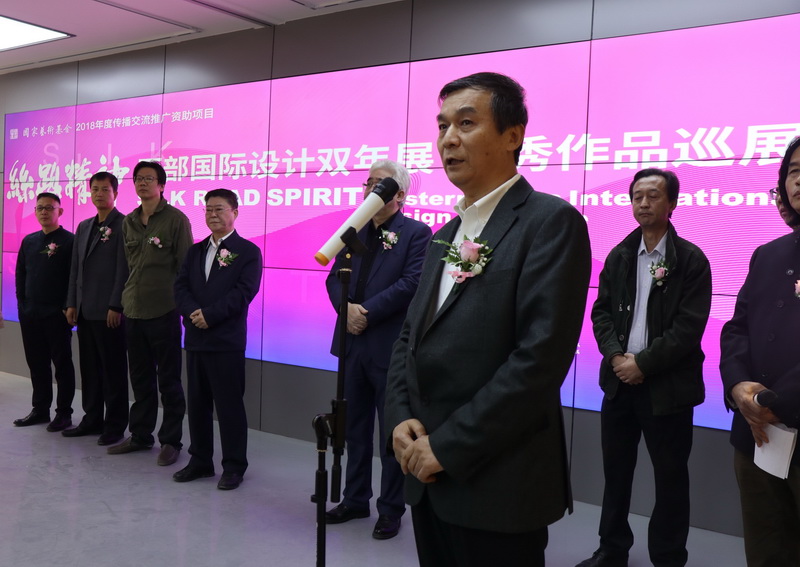 西安美术学院院长郭线庐教授在开幕式讲话,将“一带一路”倡议作为一线从事艺术设计教育的工作者努力践行艺术设计创新的重要内容和主题。西安是丝绸之路的起点,是“一带一路”建设的桥头堡城市,由西安美术学院主办的丝路精神-西部国际设计双年展受到了国内、外设计院校与机构的高度重视和积极响应。为了进一步落实党的关于“构建中华优秀传统文化传承体系,加强文化遗产保护,振兴传统工艺”的总体目标,西安美术学院加强和建立与西北五省各兄弟院校、艺术创作团队之间的合作,以“中国传统工艺的创新设计”为主题举办了本次活动。西安美术学院有70年的建校历史,是从延安走出来的,具有红色血脉的美术学院。我们拥有美术学、设计学、艺术学理论三个一级学科,均具有博士学位授予权,培养出了一批又一批的艺术大师。自2014年起连续三年成为国家艺术基金立项最多的高等院校。丝路精神-西部国际设计双年展在丝路沿线省份举办巡展,打通与西部兄弟院校之间关于文化合作的渠道,为文化研究、设计创新、文化繁荣作出共同的努力。现代设计在今天有很多新的研究课题和新的设计要求,弘扬传统、面对今天,展望未来是每一位设计师和从事设计教育的高等院校教师研究的重要方向。利用好自身优秀资源、发挥优势,把中华民族最美的文化和艺术呈现出来,我们任重而道远。西部国际设计双年展在美丽的乌鲁木齐举办,是我们与新疆的艺术设计教育同行开展合作、交流,用优秀的设计文化成果,影响的我们的下一代,特别是高等学府在读的莘莘学子,关注优秀传统工艺的创新,为推动中国传统文化艺术传承与发展做出努力。