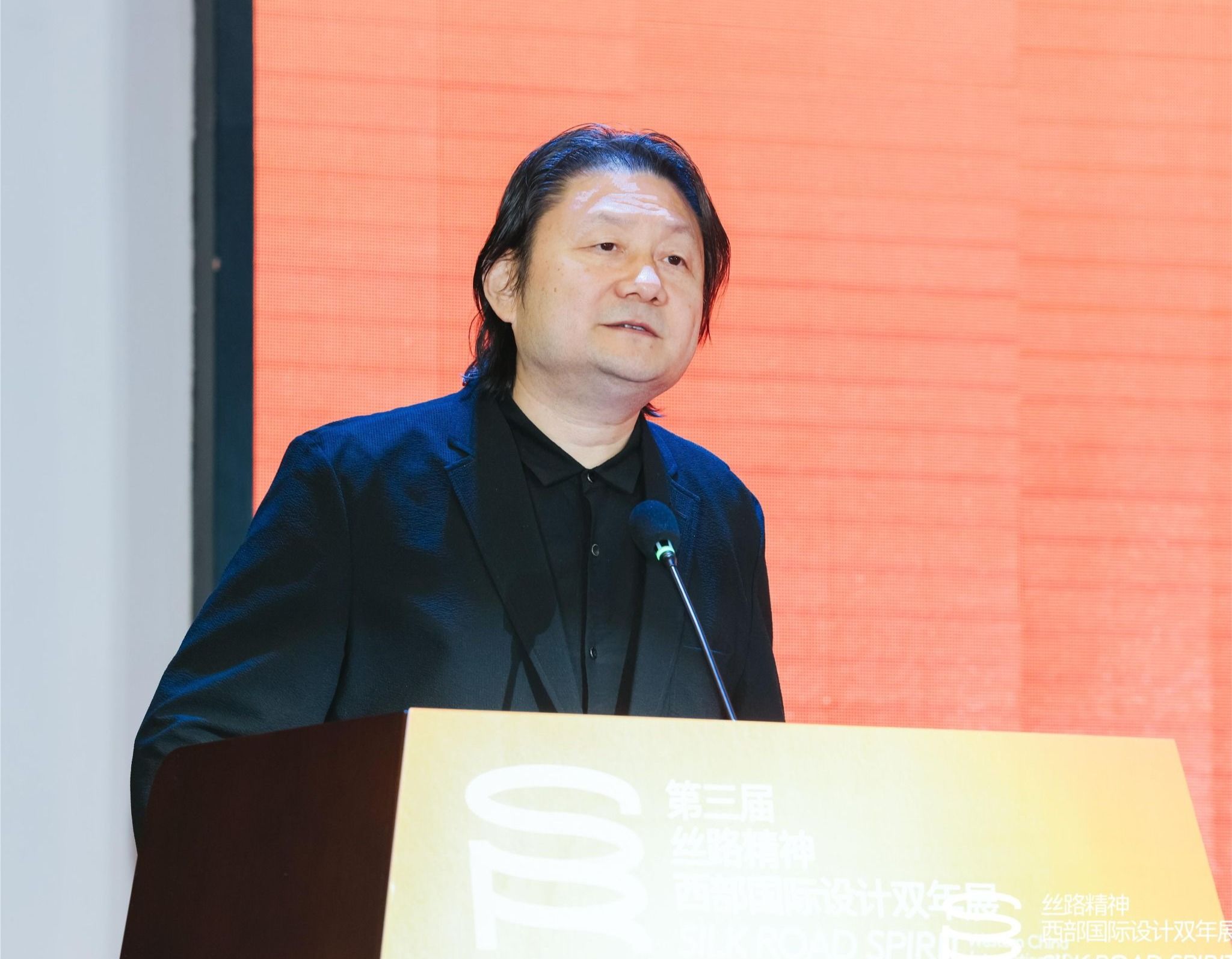 朱尽晖在致辞中向与会领导嘉宾齐聚丝路共叙国际设计表示热烈欢迎,他简要阐述了本次双年展的主题“精神的力量”并指出,丝路精神倡导的就是人类的文明和互鉴,今年的双年展是时代之问,也是我们答题的方案——就是在文明互建互学互用的基础上,尤其在“一带一路”提出和“人类命运共同体”提出的十年来,设计界、艺术界做了哪些工作?西安美院以及国际国内重要的院校和艺术家做了什么?他强调,设计从远古走来,无不渗透着人类文明的结晶,设计的意义正是把各方面的文化和基因与我们现存生存的世界相连。“丝路精神——西部国际设计的双年展”的举办正值西安美术学院设计专业成立30周年,他回顾了过去的成绩,也对未来的发展以及校际的合作提出了期望,希望设计专业在学科交叉,在人才培养、在智能化、在信息化、在产品领域等各个方面都能彰显中华传统文化的优势,发挥地域优势,在文化的引领下,用设计的力量服务西部、服务国家,协同创新发展,共谋中国设计之路,共创美好的设计未来。