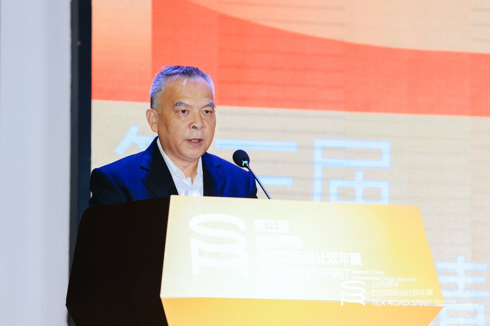 李海荣在致辞中表示,此次双年展论坛活动是对弘扬丝绸之路精神、深化同共建“一带一路”国家文明对话的一次积极响应、具体实践和生动诠释,是推动陕西省与丝路沿线国家文化合作发展升级的有益平台。他从用“新”让传统文化“活起来”、践行“丝路精神”的务实举措、推进文旅深度融合三个方面谈了此次论坛的意义,强调要以“新”夺人,用新业态、新模式、新途径来“活化”传统文化资源,让优秀的传统文化成为具有中国特色和时代精神的艺术精粹,走向世界。他希望通过此次论坛的“跨界深融”,为文旅深度融合注入新活力,不断挖掘设计成果转移转化的“新动能”,创作出更多能够体现中华文化内涵、富有情怀,充满时代气息的文化产品,为陕西打造文旅产业作出更多贡献。